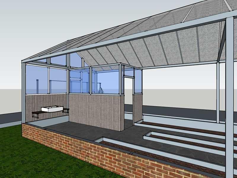 El invernáculo debía consistir en una estructura de aluminio,vidrio laminado,pisos de material,banquinas ,donde se colocarían las especies, con su correcto desagüe con mallas para impedir el ingreso de animales y evitar el egreso de semillas, ventilación y climatización controlada. Era necesario contar con una antecámara de ingreso y un área de trabajo.