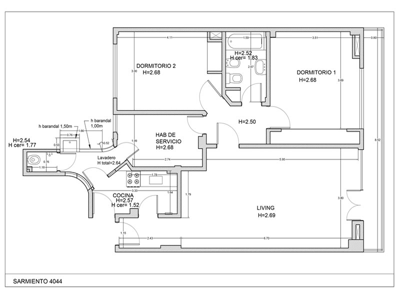 Proyecto arquitectónico, computo y presupuesto para la remodelación de la vivienda unifamiliar de 4 ambientes, baño completo y toilette, de 82m2.
