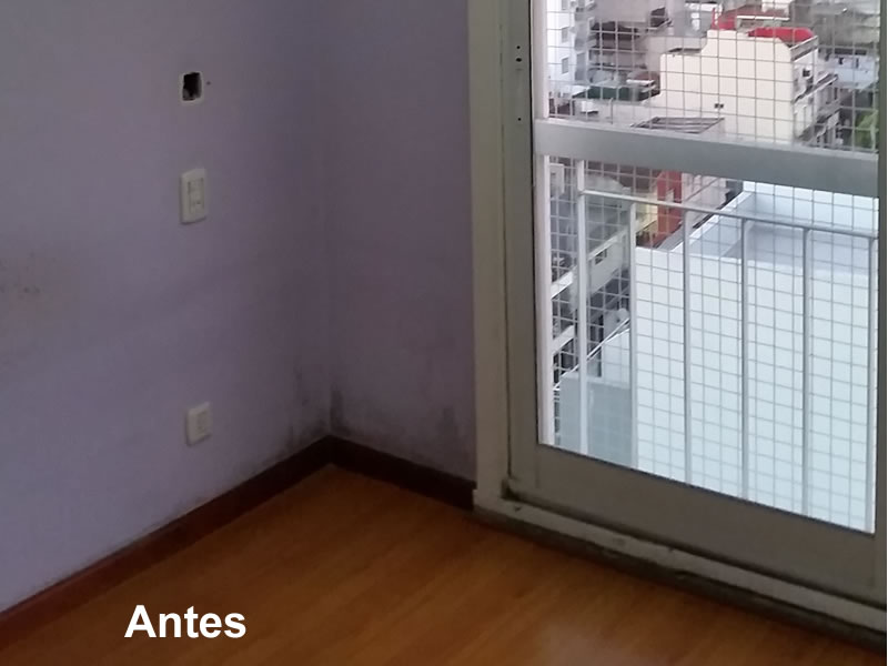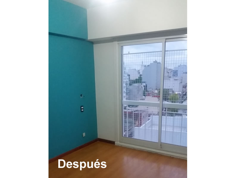 Posteriormente se realizaron revoques nuevos, se colocó un porcelanato simil madera en living comedor y cocina, se colocaron los zócalos y se realizó el trabajo de pintura en todos los ambientes de la casa y balcón.